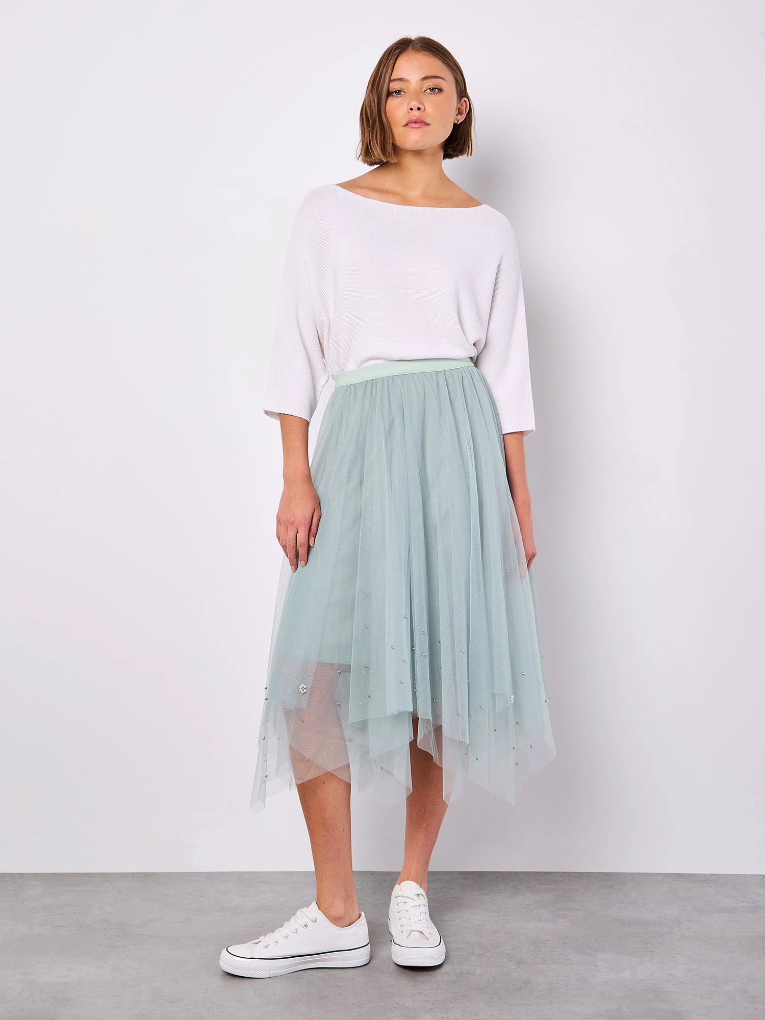 PEARLS HEM TULLE SKIRT